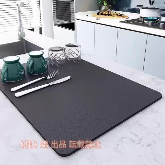 水切りマット珪藻土キッチン用マットおしゃれ拭けるアスベスト不使用大判瞬間吸水速乾脱臭効果抗菌ソフト錦鍋敷き滑り止めシリコン食器置き北欧
