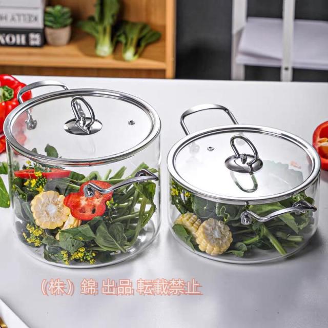 両手鍋ガラス鍋カレー鍋IH対応オール熱源対応ガラス鍋蓋付透明な大容量スープパンフライパン耐久性パスタ鍋ガラス調理器具株式会社錦便利実用で手作り調理