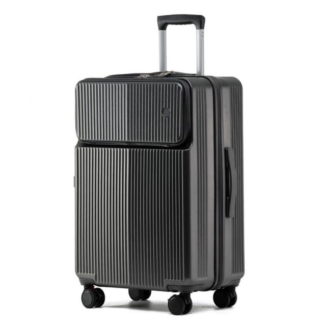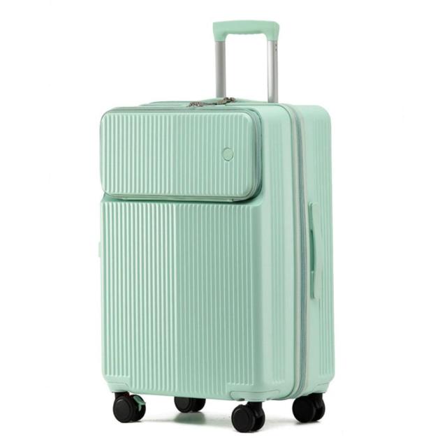 キャリーケース フロントオープン スーツケース 機内持ち込み キャスター ストッパー付きトップオープンパソコンケース 株式会社錦前開きポケット 超軽量