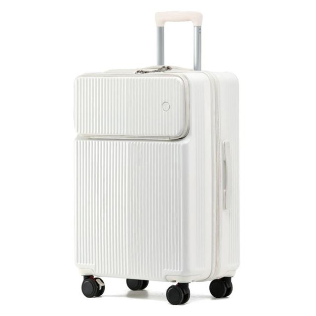 【キャスター ストッパー付き】走行中の揺れる電車内でもストッパー(ブレーキ)機能でピタっと自立。タイヤのブレーキボタンを足で押して、後輪の2輪にブレーキがかかります。不用意な転がりを防ぎ。【トップオープン機能/折りたたみ式カップホルダー 】 フロントオープン 立てたまま荷物の出し入れができる。新幹線の中でも、旅の途中でも、フロントポケットから出したいものを簡単に取り出すことができ、ビジネスシーンにも活躍しています。折りたたみ式カップホルダー、傘や水グラスなどを置くことができ、両手が解放されます。 【強い耐衝撃性】三層複合PC素材、耐衝撃性に優れた上、高弾性で、変形しにくい。エンボス加工、傷つきにくい。アルミフレームスーツケースより軽量で持ち歩きやすい。 【ダイヤルTSAロック】3ケタのダイヤル式TSAロックを搭載。TSAロック搭載のラゲージは、TSA職員が特殊ツールで解錠・検査するので、施錠したまま預けることができます。※鍵は航空会社検査専用のため本製品には付属しておりません。