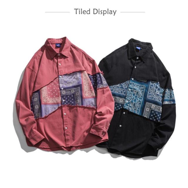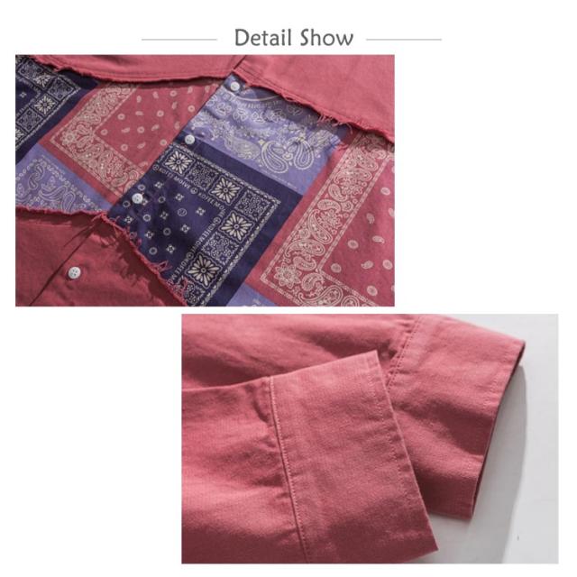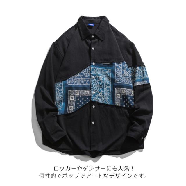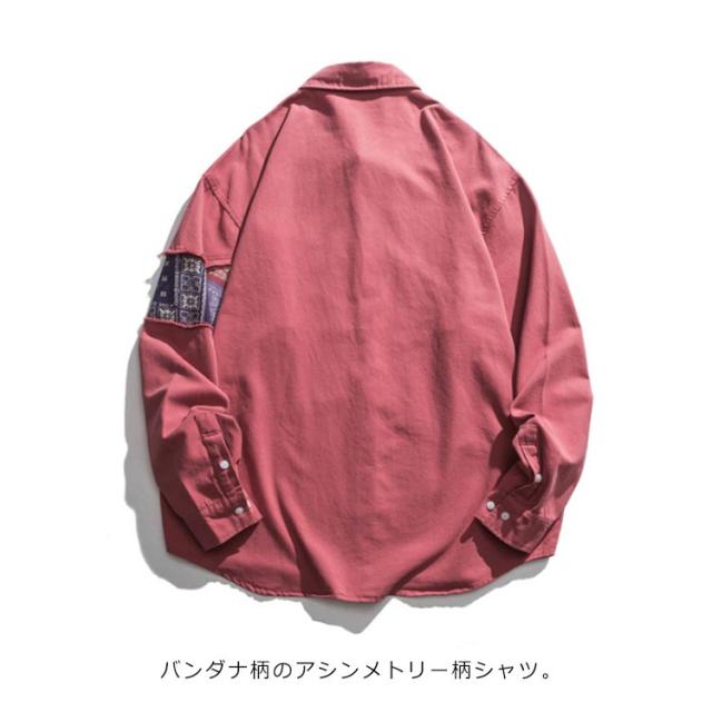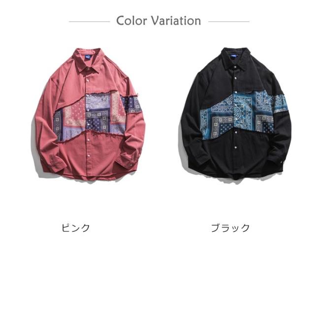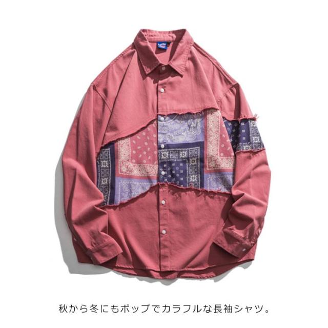 ペイズリーバンダナ柄シャツ 長袖 メンズ ペイズリー柄 シャツ 切替 ペイズリー ピンク ペーズリー バンダナ アメカジ ポップ パッチワーク クレイジー アート系 派手 メンズ レディース ユニセックス 男女兼用 渋谷系 原宿系 B系