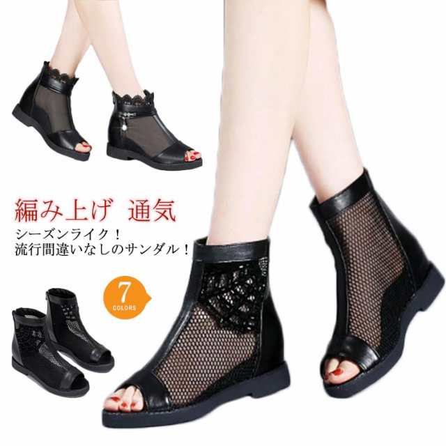 レースアップ 編み上げ ブーツサンダル ピンヒール アウトレットシューズ サンダル サンダル 透かし 夏サンダル 大きいサイズ 美脚 サマーブーツ ショートブーツ チャンキーヒール 通気 レース メッシュ 履きやすい 歩きやすい レディース 夏 送料無料 軽い