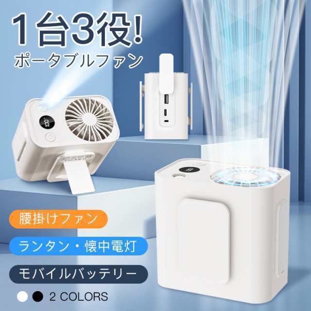 ポータブルファン 扇風機 夏の定番 首掛け 腰掛け 小型軽量 LEDライト 卓上 ベルト ストラップ 3way 父の日 5段階風量 静音設計 USB充電式 大風量 緊急充電 懐中電灯 プレゼント 屋外作業 アウトドア 通勤 通学 お買い物 散歩 お祭り BBQ キャンプ