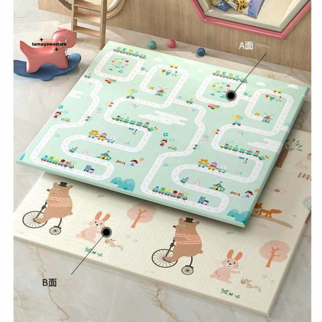 【両面使用可能】ベビープレイマットの色とりどりのかわいいアニメ動物表面と裏面の絵は赤ちゃんの視力発達や知力発達を刺激に役に立っています。当プレイマットは耐久性がいいトータルの単品で折り畳め且つ包装簡単というメリットがスペースをフルに活用します。ほかの多くの部品で組み立てるプレイマットと大変異なります