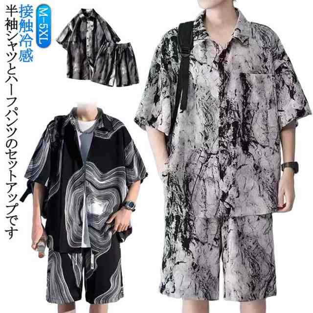 半袖シャツ 薄手 カジュアル 上下セット 接触冷感 2点セット ショートパンツ セットアップ Tシャツ アロハシャツ アロハシャツ ビーチ ハーフパンツ 短パン 絞り染め メンズ 部屋着 ルームウエア 開襟シャツ 大きいサイズ ゆったり 軽量 夏 メンズファッション