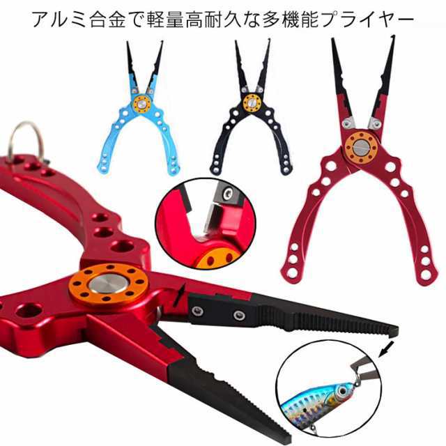 【送料無料】万能 フィッシングプライヤー 釣り プライヤー 釣具 ペンチ 釣り用ペンチ 多機能 フィッシング プライヤー ハサミ ラインカッター 針はずし ガン玉潰し スプリットリング 釣り具 片手操作 カラビナ付き