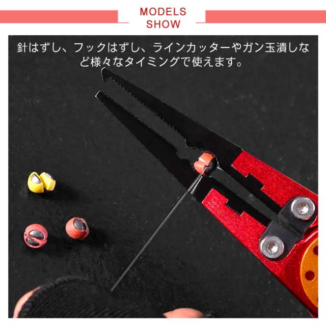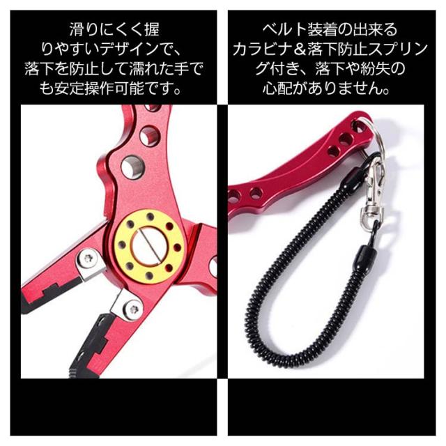 万能 フィッシングプライヤー 釣り プライヤー 釣具 ペンチ 釣り用ペンチ 多機能 フィッシング プライヤー ハサミ ラインカッター 針はずし ガン玉潰し スプリットリング 釣り具 片手操作 カラビナ付き