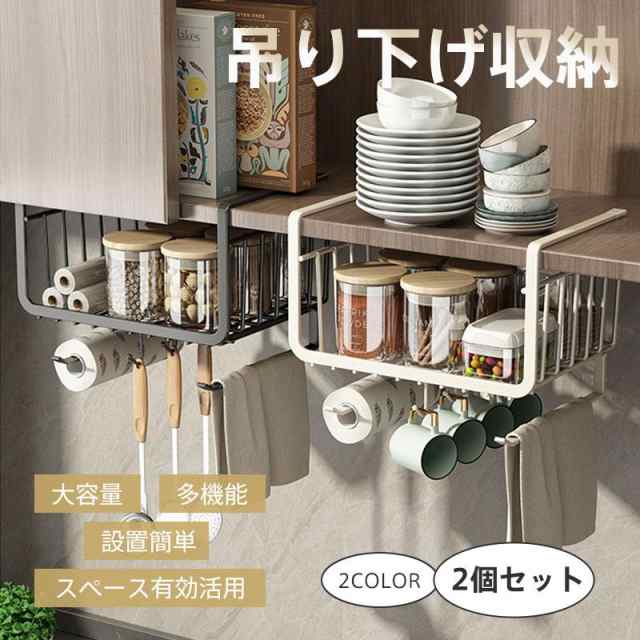吊り下げ収納 2個セット キッチン ハンギングバスケットラック 戸棚下収納 収納ラック お手入れ簡単 滑り止め 省スペース 大容量 空間有効活用