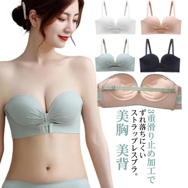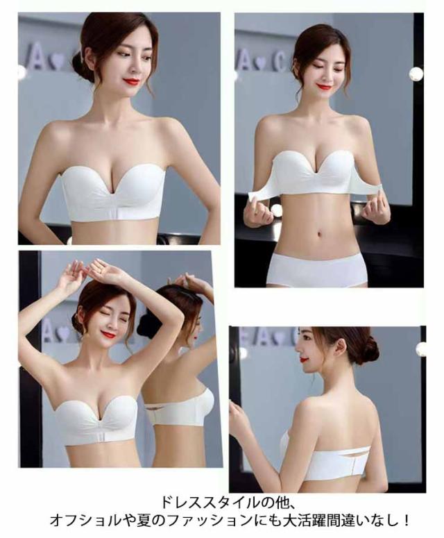 美背 結婚式 ストラップレスブラ オフショル ブラジャー ストラップレス チューブトップ ノンワイヤー 紐なしブラ インナー 高弾性 寄せブラ バストアップ 脇高 苦しくない 美胸 落ちない レディース 谷間 ブライダルインナー フロントホック 三重滑り止め