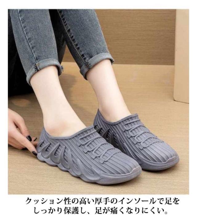 | シンプルで合わせやすいレインスニーカー クッション性の高い厚手のインソールで足をしっかり保護し、足が痛くなりにくい。 ソールもアッパーも柔らかいPVC素材だから、足の動きを妨げない。 長時間歩いても疲れにくい快適な歩き心地です。 ローヒールだから、安定感も抜群。 滑りやすい濡れた路面でも安心して歩けるように、靴底はしっかり溝を入れて滑りにくく。 雨の日も、雪の日も、泥汚れが気になるアウトドアにも一年中季節も服装も選ばず、大活躍します。 | |