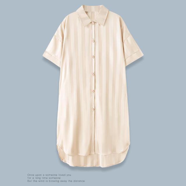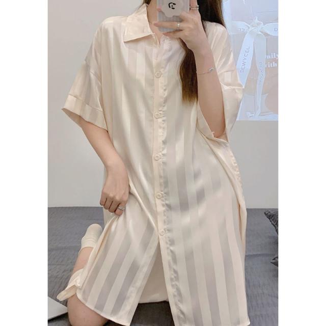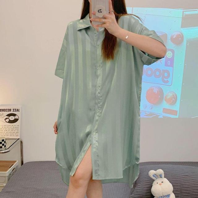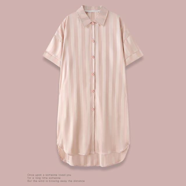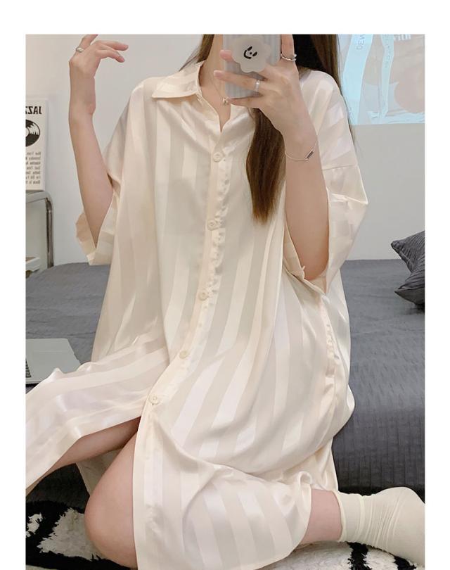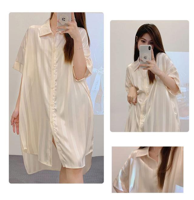 ロイヤルサテン ルームウェア ワンピース シャツ 前開き ルームワンピース ロングシャツ 可愛い 肌に優しい 部屋着 シャツワンピ ネグリジェ 下着 送料無料