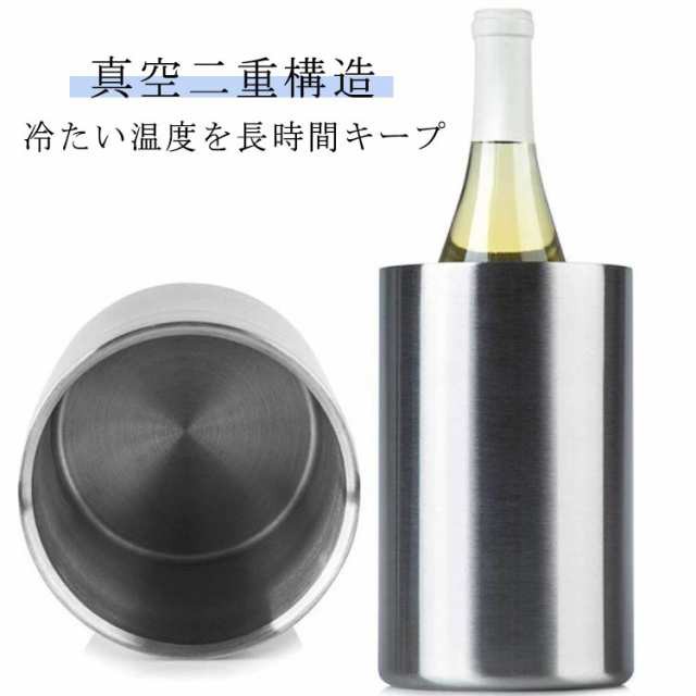 結露防止 ボトルクーラー ワインクーラー 真空断熱 保冷 1本用 保冷 エコ ステンレス 二重構造 氷 アイスペール 宅飲み 保温 バケツ シャンパン クーラー ワイン 日本酒 アイスバケット クリスマス ホームパーティー 結婚式 アウトドア アイスバケット