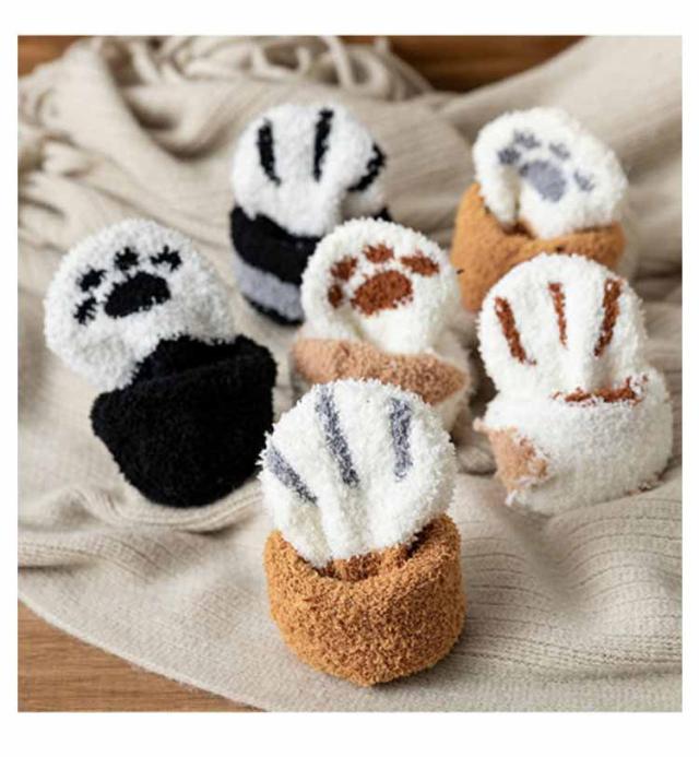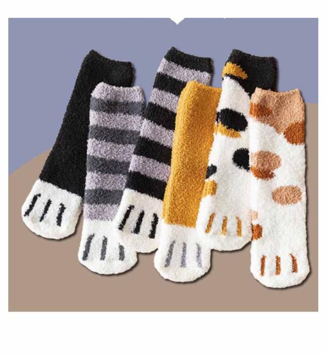 【6足セット】もこもこ ソックス レディース もこもこ 靴下 ボア モコモコ かわいい 猫足 ソックス セット 2種類 6足セット 23-25cm かわいい 可愛い くつ下 すべり止め 猫 ねこ ネコ 猫グッズ