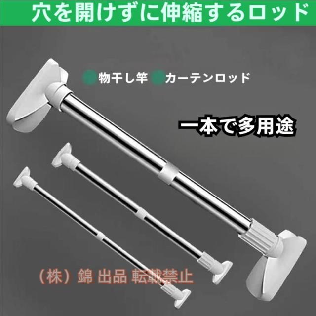 突っ張り棒製品 工具不要 簡単取り付けるくぎネジ パンチを使わず、突っ張るだけで簡単に取り付けられます、 製品には微調整ナットが付いており、接触面の力や要件に応じてナットの圧力を調整することができます,取り付けがしっかりしているかどうかを避けるために、取り付け後に引っ張ってしっかりしているかどうかを確認し、~防落下しないようにしてください。 このハンガーレールの長さは、穴のあるバックルの距離を調整するのではなく、伸縮によって調整しますしたがって、設置の距離間隔内でマッチングして設置することができます。 (バックルの調整は穴と穴の距離があり、取り付け距離を完全に一致させることはできません) 左右の四角い頭は自由に分解でき、両端mの四角い頭が分解された後、内径32mm程度の穴でしたら、通ります。 太いロッドの外径は、32mm、細いロッドの外径は、29mmなので、 伸縮ポールを取り付けた後、再利用する方法, かかったロックを解除する方法はありますか~ ロックと逆方向にひねるだけです,解除ロックをできます.