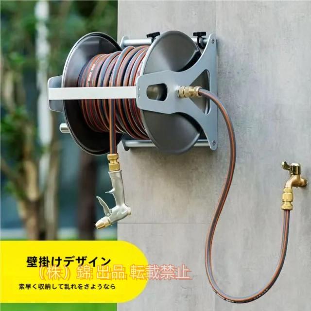 ホースリール 散水ホース 10m 20m 30m 40m 壁掛け式 ステンレス鋼 ガーデンホースリール 高圧スプレーガン付き株式会社錦 5つのスプレーモード 金属水