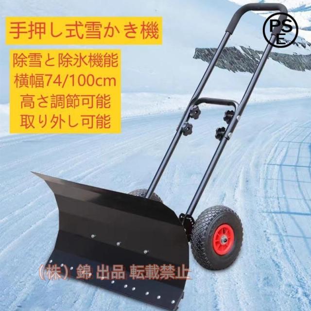 除雪機 家庭用 手押し式 雪かき スコップ シャベル 除雪と除氷 2つの機能 除雪幅74cm/100cm 除雪高さ42m 株式会社錦左右角度調整 雪かき機 タイヤ付き