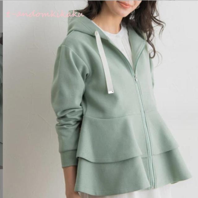 パーカー 裾 フリル レディース トップス グレー 裾フリル 株式会社錦 長袖 スウェット風 あったか フード ブルゾン トレーナー アウター おしゃれ 可愛い