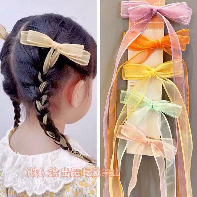 ヘアクリップ ヘアアクセサリー 2個セット キッズ 女の子 株式会社錦 子ども ヘアアレンジ 編み込み リボン リボン型 ロングリボン 可愛い 透け感