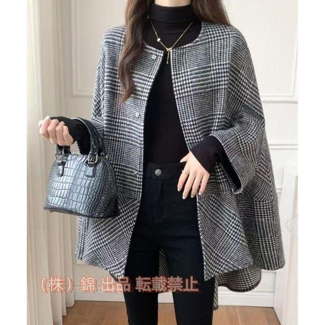 コート レディース 秋冬 チェック柄 ポンチョ アウター 羽織り ポンチョコート マント ドルマン ケープ 株式会社錦自転車 通勤 春秋 羽織る グレンチェック
