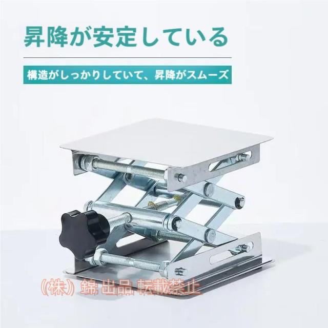 使い勝手が良く、高さ調節が可能です。耐久性抜群:上質ステンレスに作られており、サビに強く、耐食性と耐久性にも優れています。改良されたヒンジとスクリューを採用、スムーズな昇降を実現しました。多用途:作業における高さ調整などに便利な小型昇降台です。学校の授業や研究、理科実験、趣味のホビーに、フラスコ、試験管、ビーカーなどの昇降にも最適です。高さ調整可能:側面のつまみを回すだけで、昇降台の高さは7.8cmから29.3cmまで自由に調整でき、使い勝手がよいです。使わないときも低く調整して収納できます。安定性が良い:天板は10*10cm/15*15cm/20*20cm/25*25cm/30*30cmの小型サイズですが、耐荷重はなんと5kg/10kg/15kg/20kg/25kgに達しています。