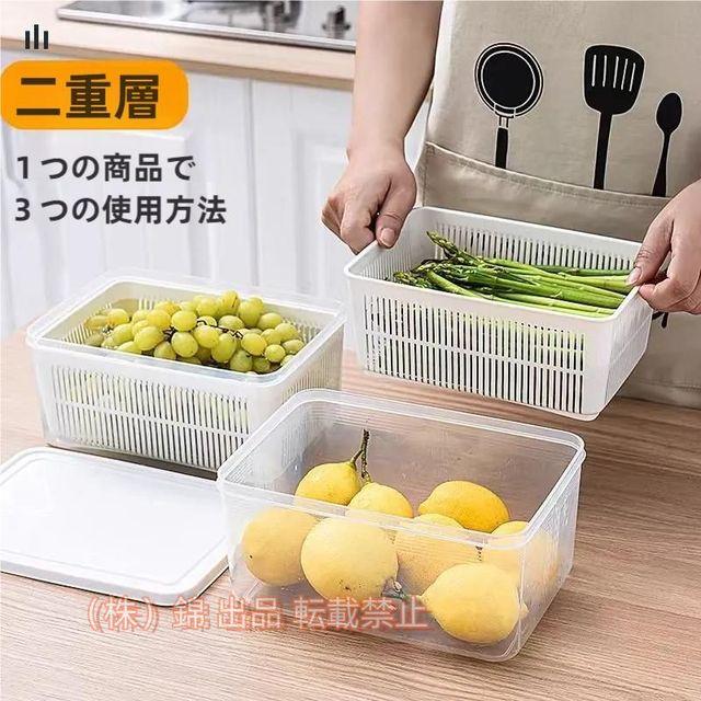 食品保存容器蓋付き冷蔵庫収納ケース野菜水切り器保存容器水切り保存パックザル付収納ボックス大容量野菜株式会社錦果物収納冷蔵庫整理ケースキッチン