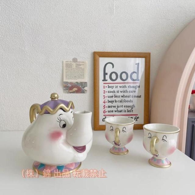漫画美女と野獣ティーセットティーポットカップティーカップティーセットポット夫人とチップのティーポットセットポット夫人シュガーポットボウルチップマグプレ