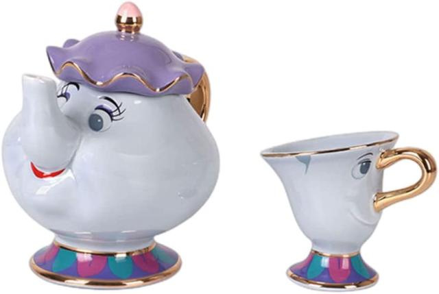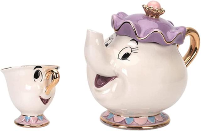 5.贈る準備ができて、この愛らしいマグカップは箱に入っています。漫画のお茶セット美女と野獣ポット夫人ティーポットチップカップスマイルラクリエイティブクリスマスバースデーギフト