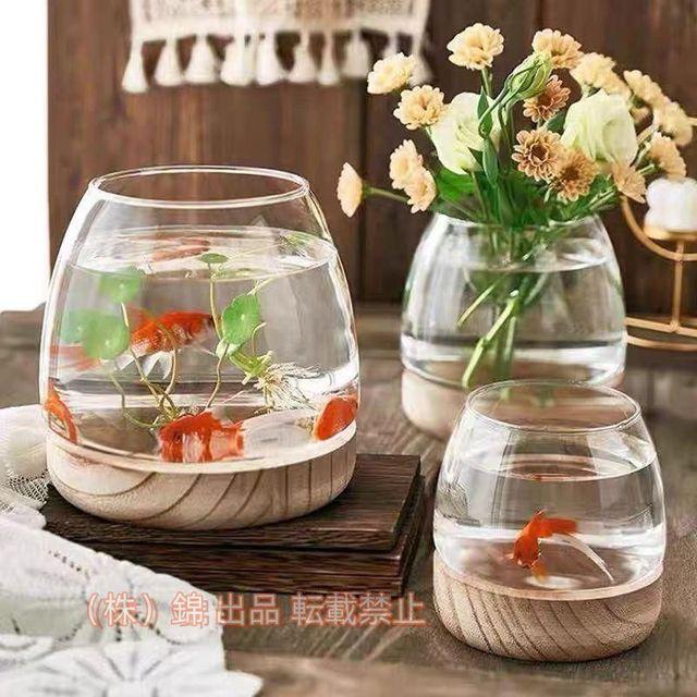 金魚鉢ガラス丸金魚水槽小さいメダカ水槽飼育水槽メダカ鉢観葉植物インテリアメダカ株式会社錦容器テーブルアクアリウムボウル水培おしゃれ北欧木製パ