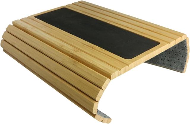 自然の風合いが特徴的な竹素材を採用しており、ナチュラル・モノクロ・シンプルなテイストのお部屋にピッタリです。肘掛けにセットすることであっという間に簡易的なサイドテーブルが完成します。テーブル部分の表面には柔らかな素材を使用しているため、ガラス製や陶器の食器を置いても傷が付く心配がありません。