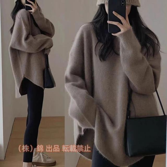 ニットセーター レディース ニット 長袖 秋冬 クルーネック Tシャツ インナー セーター トップス 可愛い 株式会社錦オーバーセーター シンプル 保温