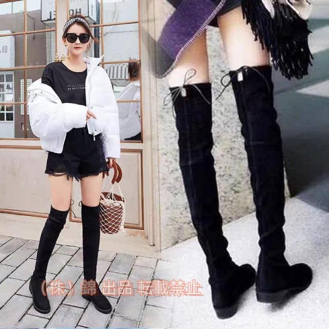 ロングブーツ レディース ニーハイブーツ ロング丈 ストレッチ スエード調 フラットヒール株式会社錦 美脚 カジュアル おしゃれ 歩きやすい 黒 大きいサイズ