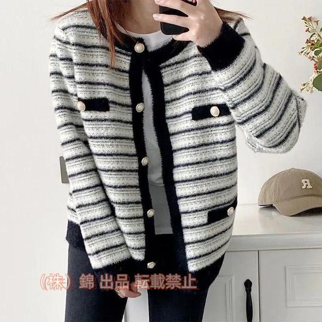 ニット カーディガン レディース ニットカーディガン ノーカラー アウター 株式会社錦ツイード風 秋 冬 春 トップス
