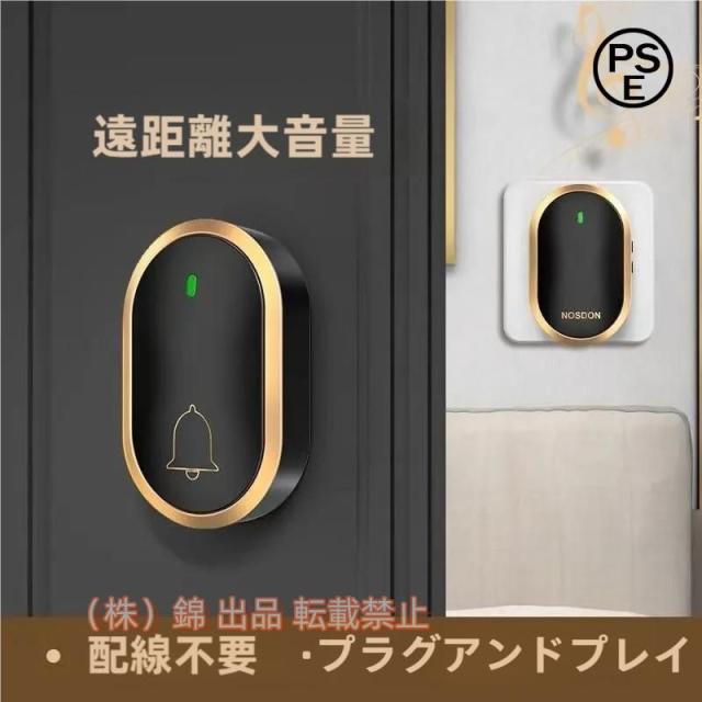 ワイヤレスチャイム電池不要玄関チャイムインターホン自動発電呼び鈴介護飲食店浴室などに適用防水防塵無線株式会社錦玄関ドアベル最高300Mの無線範囲