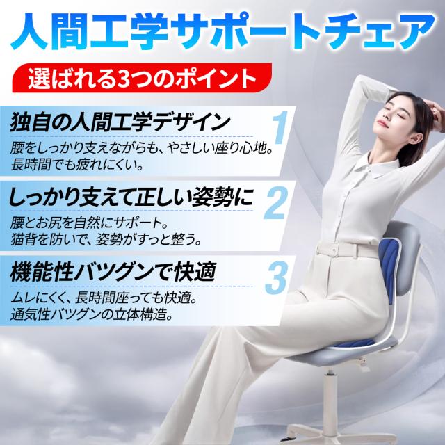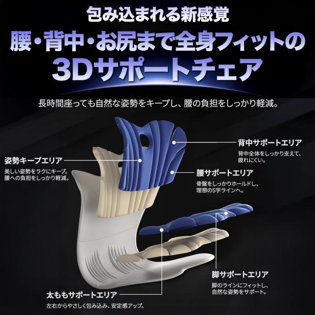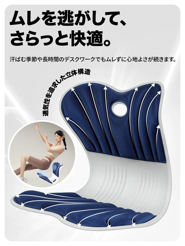 ●骨盤から背中までしっかり支える3D立体設計 グラつかず安定、自然と背筋が伸びる! |