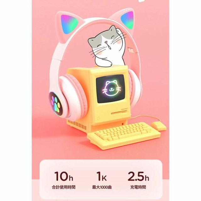 猫耳ヘッドホン ねこみみヘッドフォン ゲーミングヘッドセット ネコ耳マイク付き ブルートゥース 折り畳み式 有線 無線 ワイヤレス プレゼント ギフト特典品