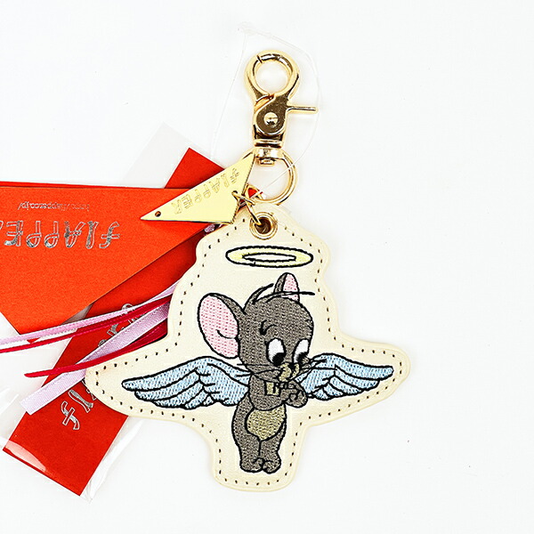 トムとジェリー ジェリー 天使と悪魔刺繍チャーム アイボリー トムジェリ
