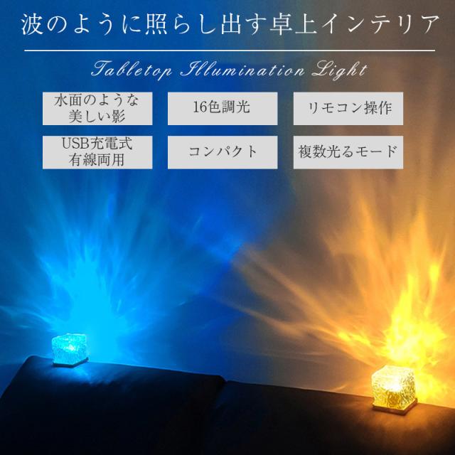 卓上イルミネーションライト オーロラランプ ナイトライト おしゃれ ベッドサイド リモコン付き 16色 間接照明 水面 ライト ギフト 寝室 リビング