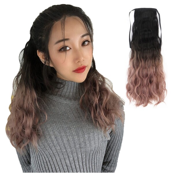 レディース リボン式 グラデーション ポニーテール ウィッグ 巻き髪つけ毛 ロング ヘア エクステ かつらナチュラル ポイントウィッグ 55cm (ピンク, 55cm)