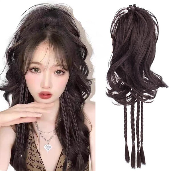 HAPVITAL ポニーテール ポイントウィッグ カール ロング ポニーテールウィッグ ウィッグ 巻き髪 エクステ 自然 つけ毛 簡単クリップ式 (ライトブラウン)