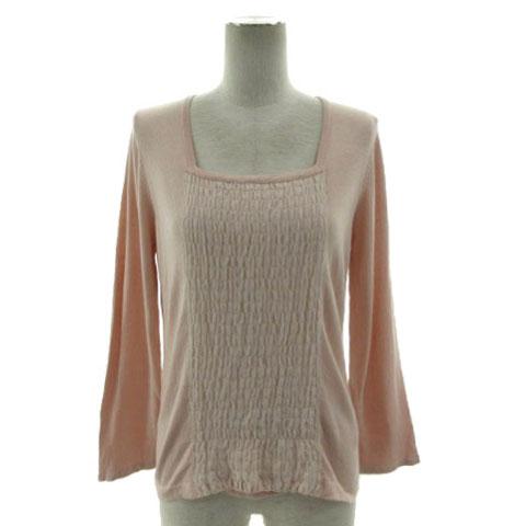 【中古】ミッシェルクラン MICHEL KLEIN ニット スクエアネック マジョリカプリーツ切替 シルク混 ピンクベージュ 38