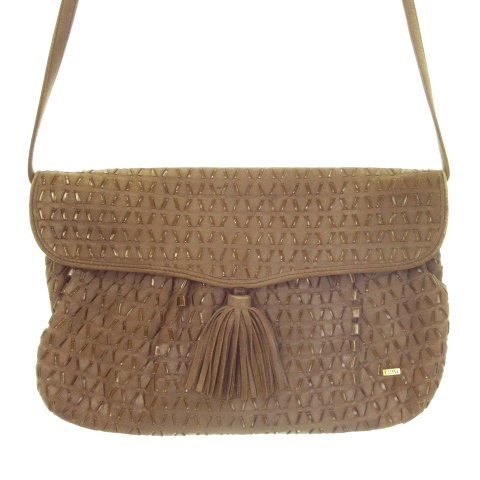 【中古】バリー BALLY ショルダーバッグ レザー エナメル 編み込み タッセル ロゴ 茶 ブラウン /AH12 ■GY18