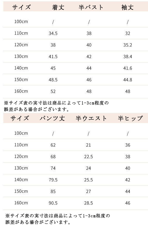 | サイズについての説明 | 110 120 130 140 150 160 |