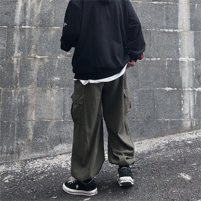 ワイドパンツ メンズ ベイカーパンツ カーゴパンツ ボトムス パンツ ガウチョパンツ 太め ズボン ウェストゴム ゆったり 大きいサイズ 冬 秋