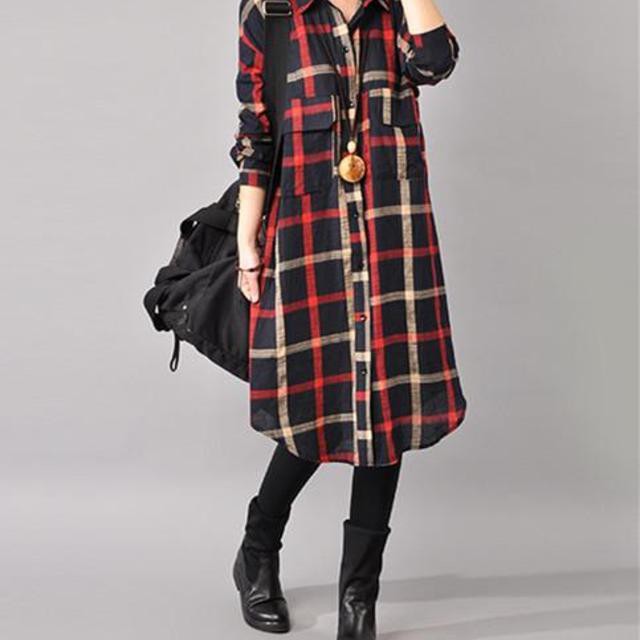 チェック柄 七分袖 ワンピース チュニック 膝丈 シャツ シャツワンピース レディース