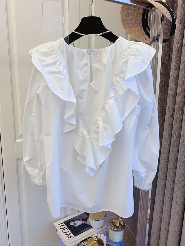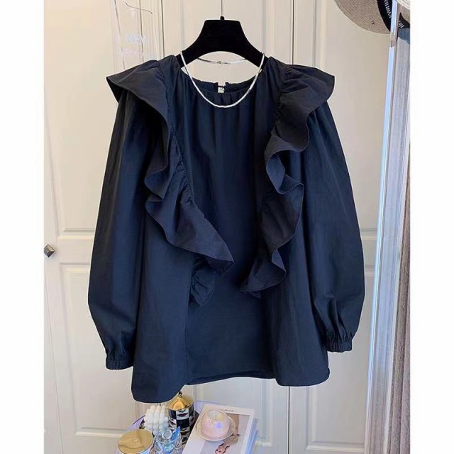 トップス レディース ブラウス シャツ 長袖 無地 ペプラム かわいい 体型カバー オフィス カジュアル おしゃれ 春 秋