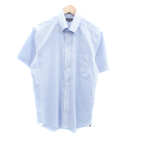 【中古】フィールドドリーム Yシャツ ワイシャツ ボタンダウン 半袖 ストライプ柄 L 青 ブルー オフホワイト