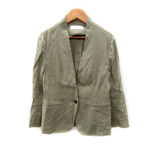 【中古】コラージュ ガリャルダガランテ ノーカラージャケット ミドル丈 無地 麻 リネン F カーキ /SY37 レディース
