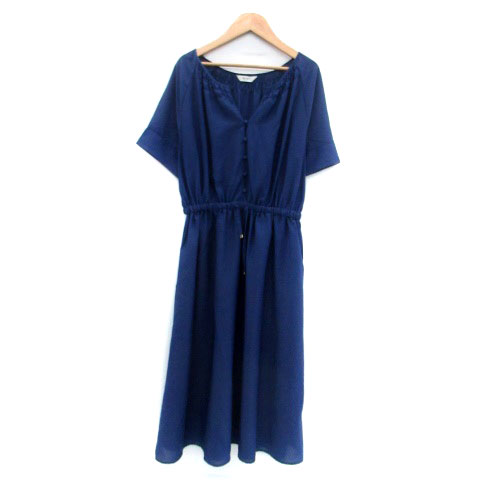 【中古】ビームスハート BEAMS HEART ワンピース スリットネック 半袖 ロング丈 紺 ネイビー /HO22 レディース