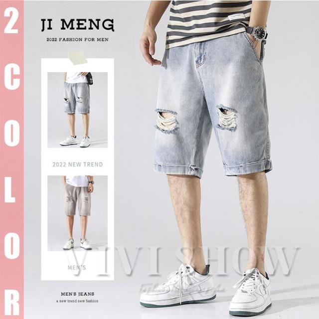 ジーンズ メンズ ダメージ 5分丈 ハーフ ハーフパンツ クラッシュ デニム ダメージ加工 ショートパンツ 短パン 春夏