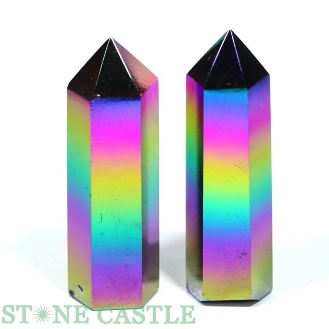☆一点物☆【置き石】ポイント型 オブシディアンオーラ (2本セット) No.53 天然石 パワーストーン